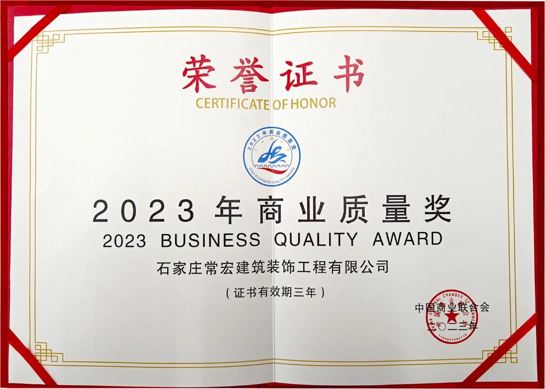 首頁(yè)> 關(guān)于我們> 公司新聞> 喜報(bào) | 常宏裝飾榮獲“2023年商業(yè)質(zhì)量獎(jiǎng)”